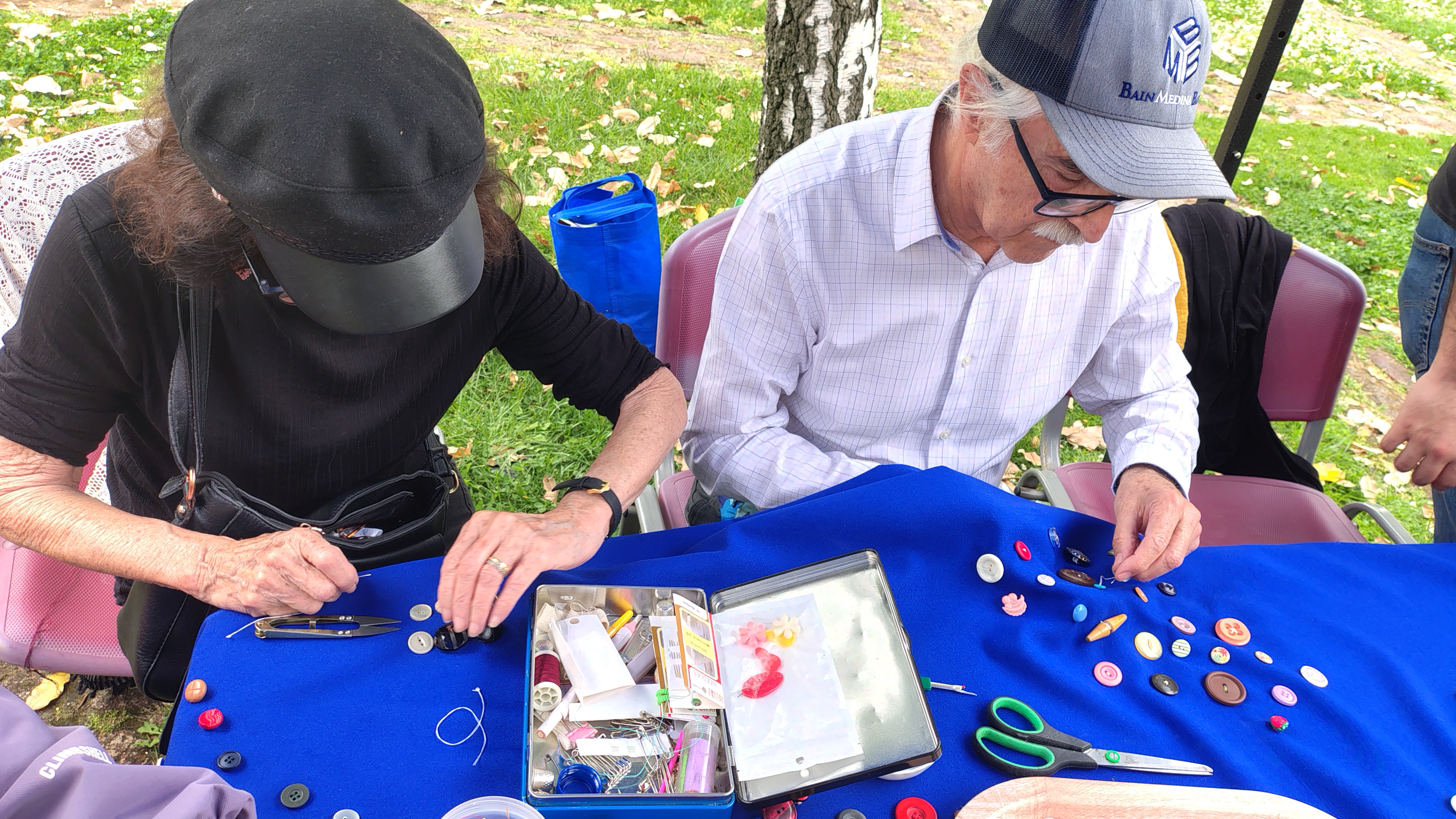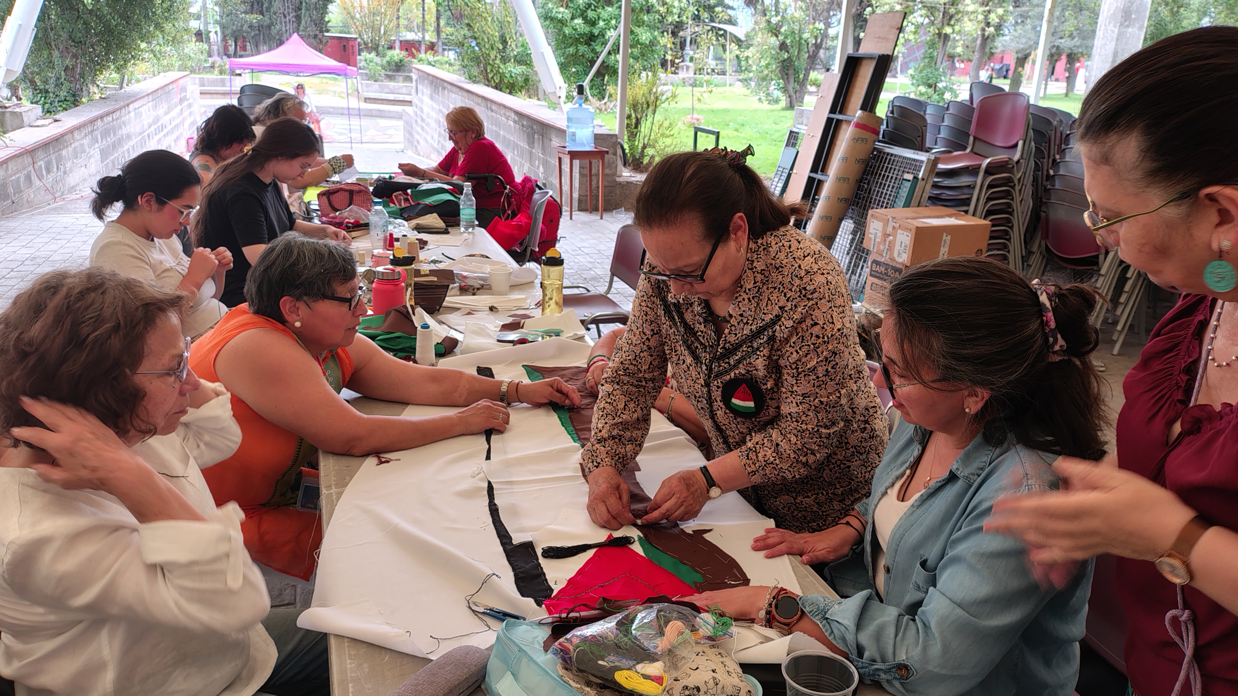 También se sumaron a esta jornada las Bordadoras en Resistencia, quienes, trabajando con sus tejidos, invitaron a los asistentes a coser y agregar un botón a estas piezas textiles para representar a cada uno de los niños y niñas asesinadas.