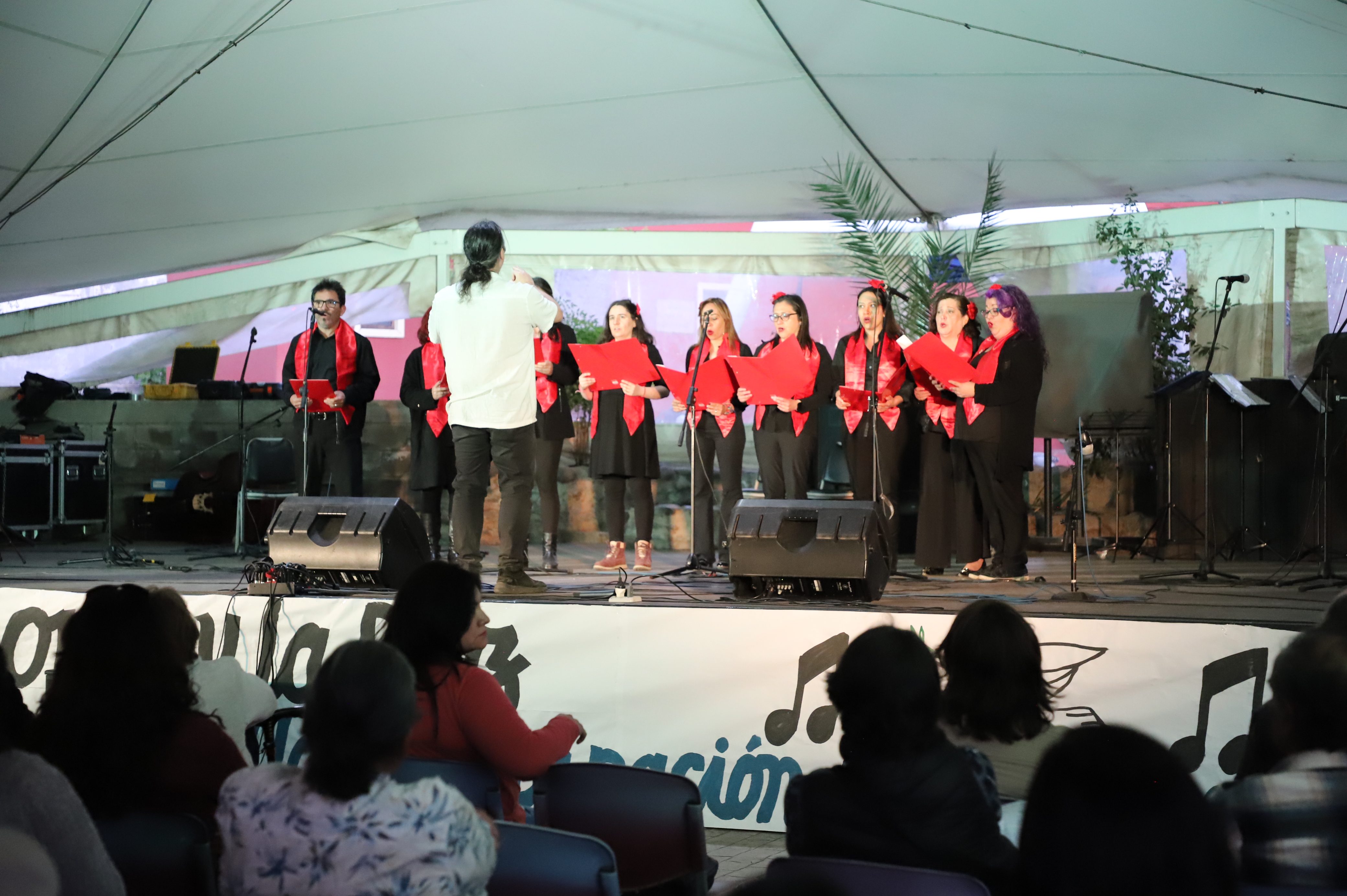 Posteriormente, se presentó el coro ciudadano “Canto para el Alma”, organización de desarrollo comunitario formada en el año 2018 en el marco de los talleres artísticos de la Corporación Municipal de Peñalolén. Bajo la dirección artística de Alexandra Angulo y con la convicción profunda de que “el arte salva y transforma vidas”, desde su génesis ha sido mucho más que un grupo coral: es un espacio inclusivo, intergeneracional y plural, donde mujeres, hombres, jóvenes y personas mayores encuentran en el canto una poderosa herramienta de expresión, sanación, pertenencia y empoderamiento.
