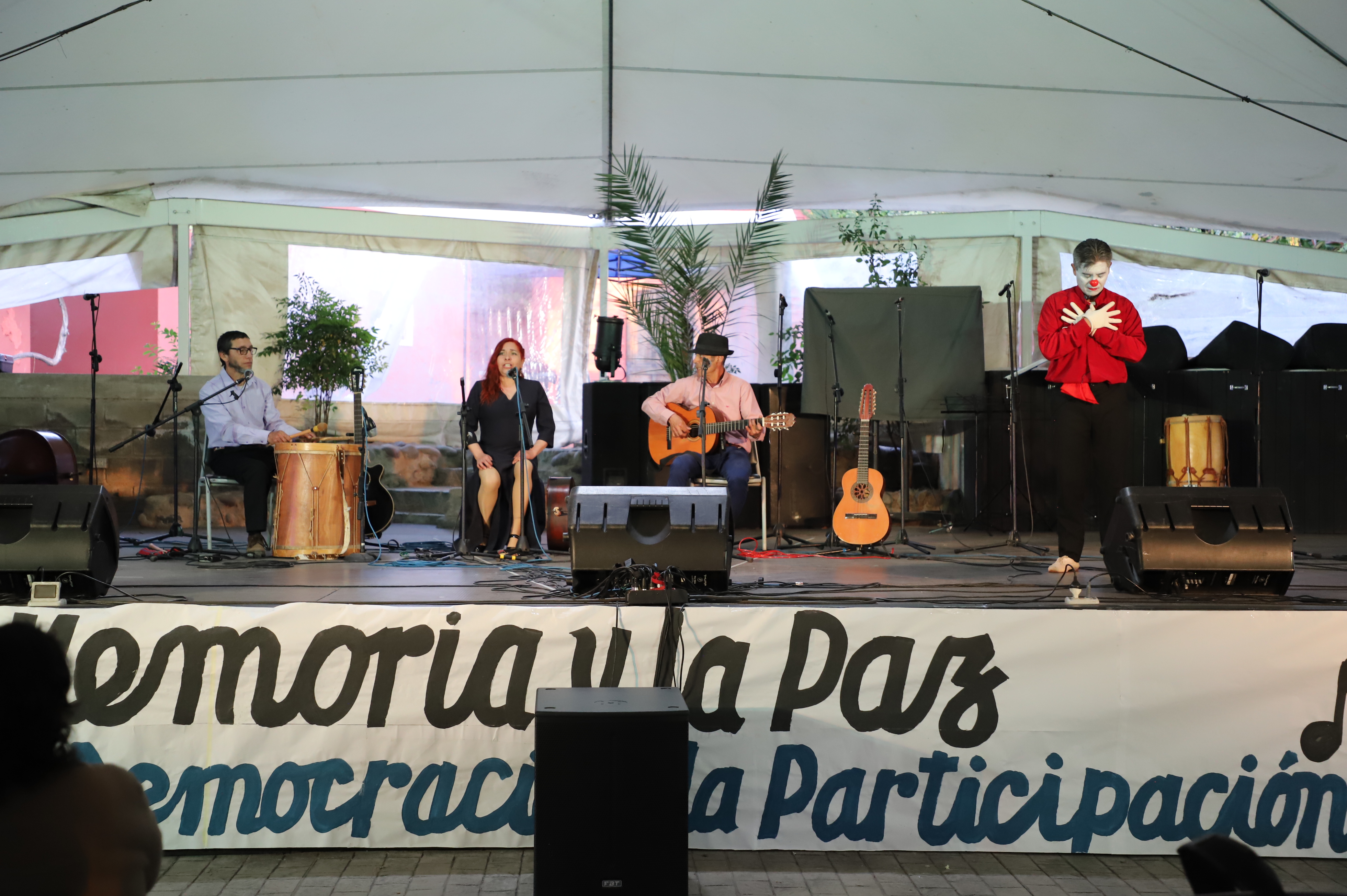 La jornada, llamada “Voces por la Memoria y la Paz”, contó con la presentación musical del Cuarteto Kamarundi, seguido del Coro Ciudadano ‘Canto para el Alma’ y, por último, del Colectivo por la Memoria Lo Hermida Peñalolén, quienes cerraron el evento interpretando la Cantata Popular Santa María de Iquique.
