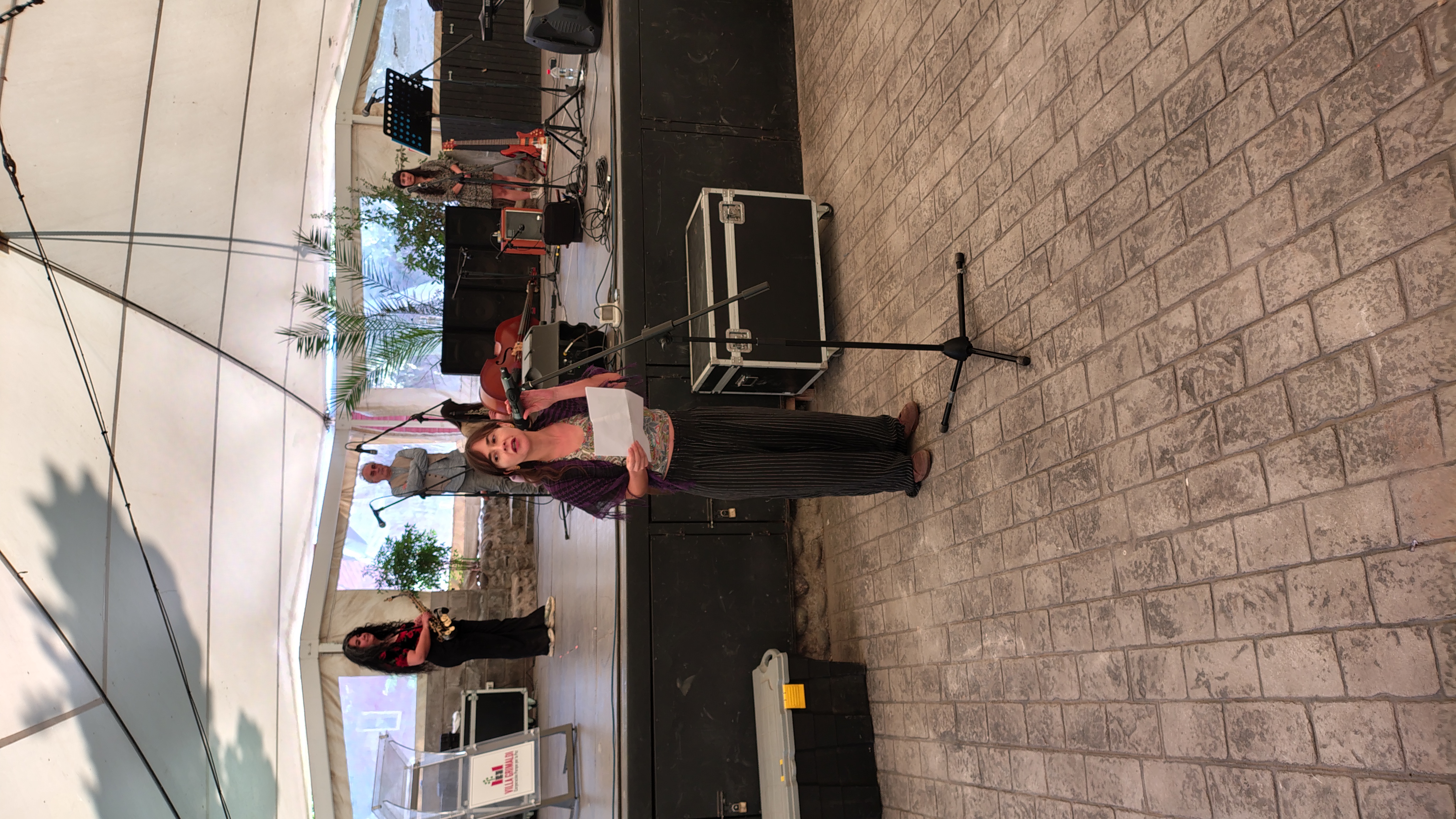 Mariana Zegers citó unos versos del poeta palestino Mosab Abu Toha, reciente ganador del Premio Pulitzer por los ensayos sobre Gaza publicados en el New Yorker: “Las cicatrices sobre el rostro de nuestros niños / van a perseguirte / Las piernas amputadas a nuestros niños /van a correr detrás de ti”. Acto seguido, recordó a Heba Abu Nada, novelista y poetisa palestina, asesinada tras un bombardeo israelí el 20 de octubre 2023, quien escribió «Si morimos, sepan que estamos satisfechos y firmes, y digan al mundo, en nuestro nombre, que somos personas justas, del lado de la verdad».