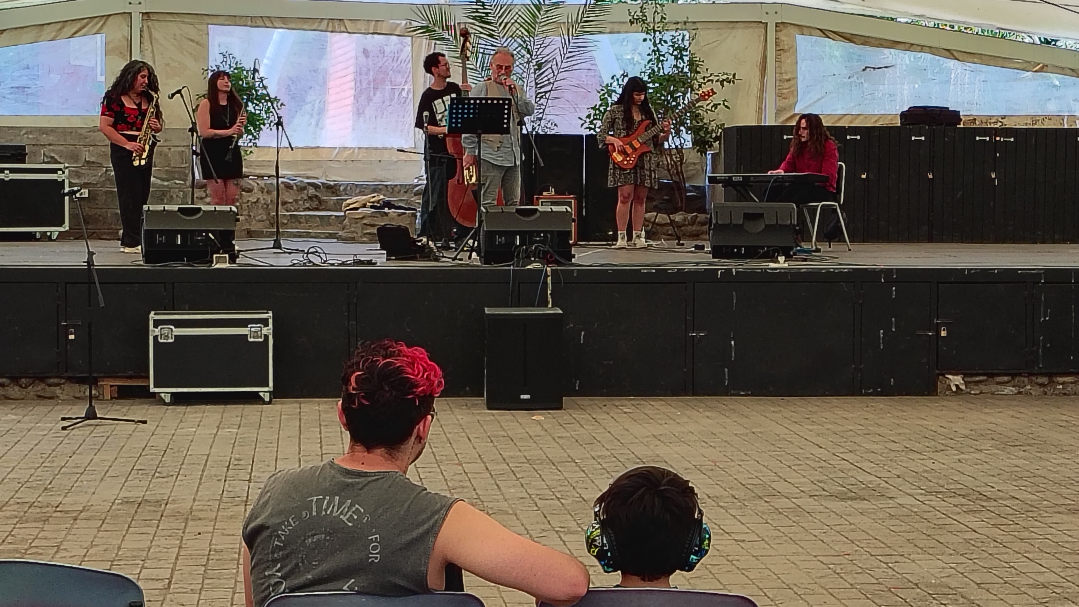 En el escenario de la velaria se desarrolló la presentación musical del Ensamble Newentun, conjunto de fusión instrumental cuyo trabajo dialoga con las luchas y expresiones culturales de distintos pueblos, mostrando durante su presención una interesante musicalización de poemas, entre ellos, los del poeta palestino Mahmud Darwich, propuesta que fue ampliamente aplaudida por los presentes.
