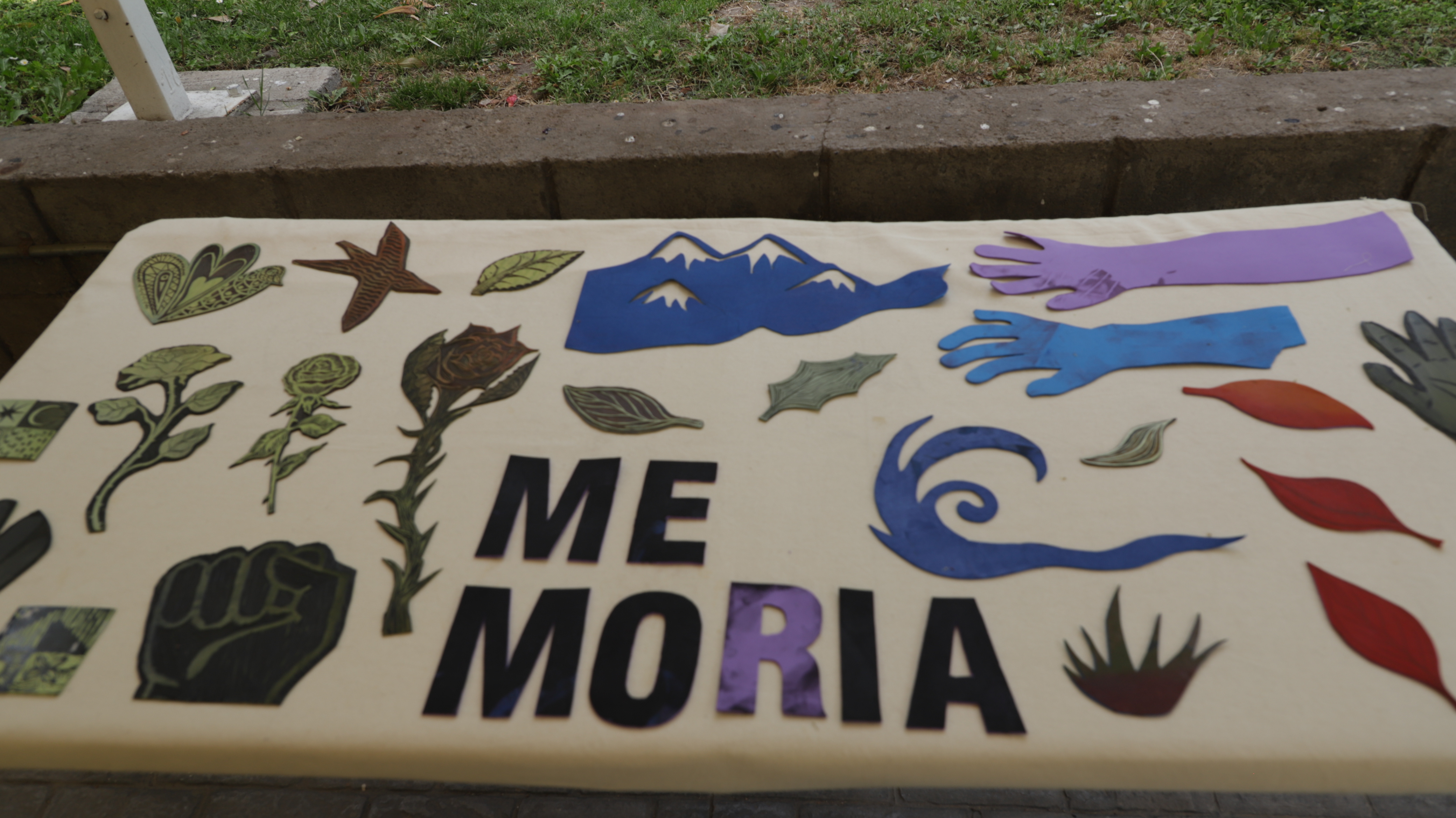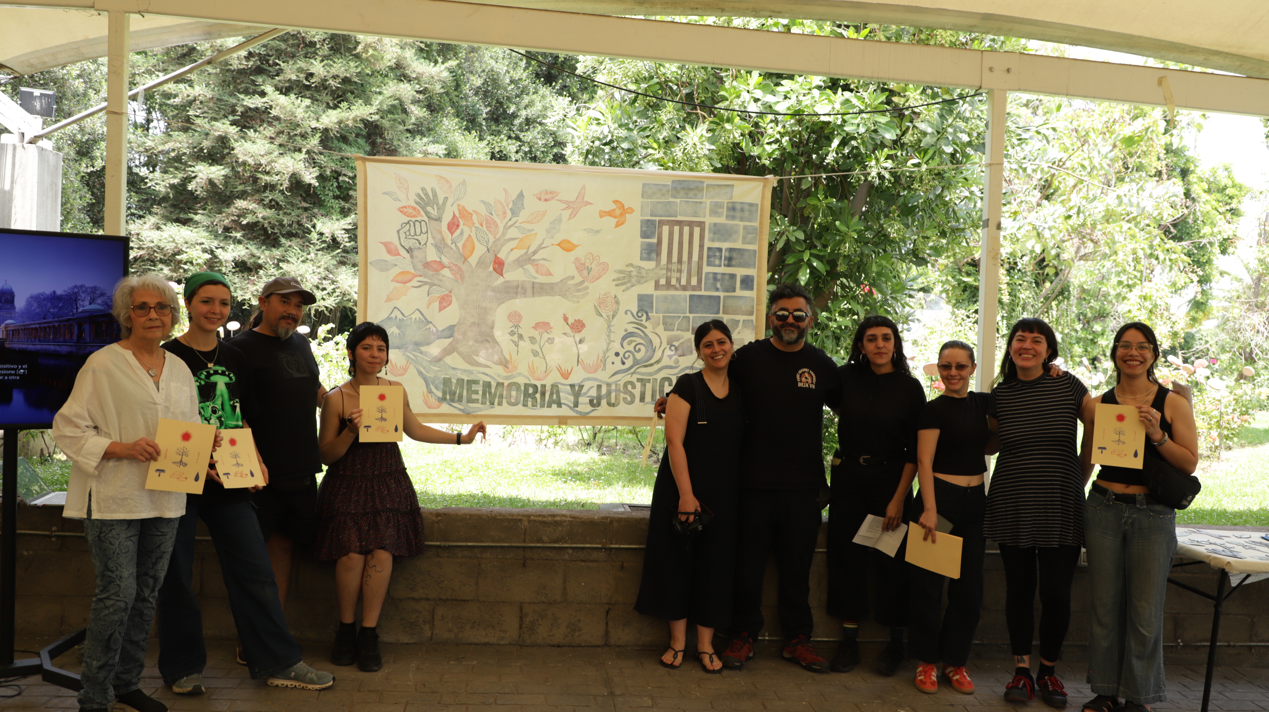 Con la entrega de un lienzo realizado de manera colectiva y que fue entregado para ser parte del archivo de Villa Grimaldi, culminó el taller “Estampando Memorias”, instancia de creación colectiva en base a técnicas de grabado impartido por el Colectivo Caudal Gráfico.